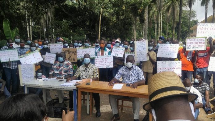 Le collectif des syndicats du Centre national de recherche Agronomique ( CNRA), ont entamé le lundi 10 août, la quatrième semaine de grève. Lors d’ une conférence de presse animé ce jour à la Direction Général sise à Adiopoudoumé, le porte parole du collectif des syndicats du CNRA Dr Edmond Koffi, a annoncé la poursuite de la grève, pour réclamer entre autres le paiement des arriérés de salaires et de primes de recherche. » Après plus de trois semaines de grève et devant la non satisfaction des revendications des travailleurs, monsieur le Directeur Général menace ces derniers d’ une mise en chômage technique, à compter du lundi 10 août et de la retenue de 12 jours sur les salaires du mois d’ août » a- t- il relevé. Il a ajouté que lors d’ une rencontre le 6 août entre le collectif des syndicats et le Directeur Général, celui-ci avait annoncé le paiement effectif des salaires du mois de juillet ce jour là et que de ce fait aucune raison ne justifiait la poursuite de la grève entamée depuis le 20 juillet 2020. » Or, nous faisons le triste constat qu’ à ce jour, aucun travailleur du CNRA n’ a reçu le salaire du mois de juillet, comme indiqué par monsieur le Directeur Général » a dit le Dr Koffi.
