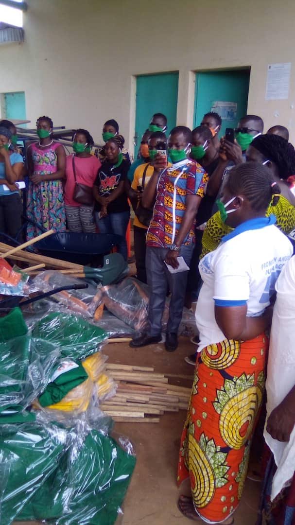 Le samedi 12 octobre dernier, dans la cour de la mairie, 50 jeunes (25 hommes et 25 femmes) du département ont reçu d’importants matériels. La cérémonie de remise des kits marquant le lancement officiel s’est déroulée en présence de monsieur Amani, conseiller municipal de Sakassou, monsieur N’da Laurent, chef des services techniques de la mairie, monsieur Ouattara, conseiller emploi jeunes, madame Konan Lydie, chef administratif de la mairie et monsieur Adou Dongo Hyacinthe, chef des services socioculturels et de la promotion humaine de la mairie.